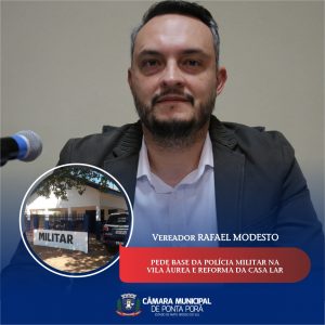 VEREADOR RAFAEL MODESTO PEDE BASE DA POLÍCIA MILITAR NA VILA ÁUREA E REFORMA NA CASA DO LAR 17/05/2021