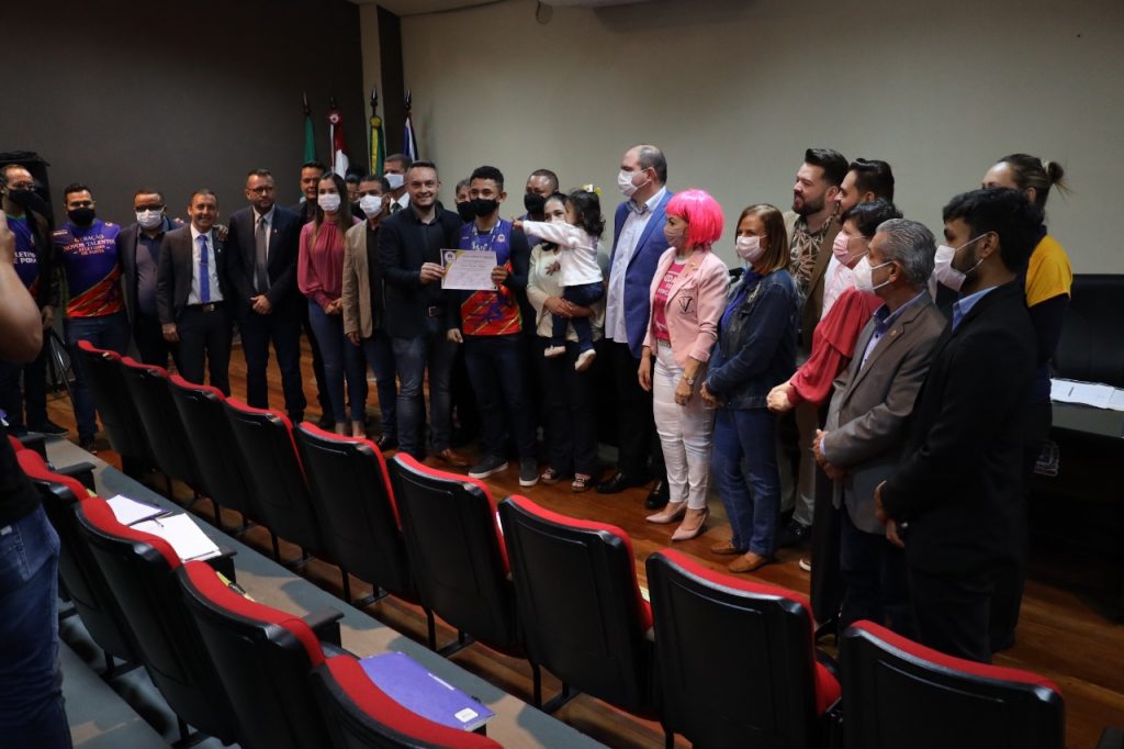 Legenda: Atletas que compõem projeto vencedor desenvolvido em Ponta Porã foram homenageados pelos vereadores durante sessão ordinária de 5 de outubro.